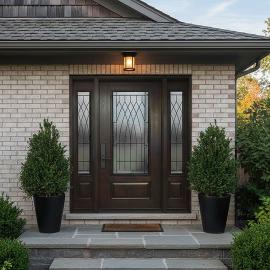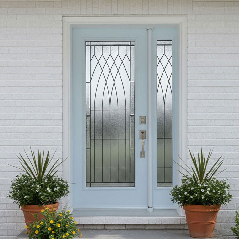 High Privacy (Rating 8/10): With a privacy rating of 8 out of 10, this glass style is ideal for front entrances facing busy streets. It utilizes textured glass (such as Glue Chip and Granite) to distort visibility while still allowing distinct beams of sunlight to brighten your foyer.