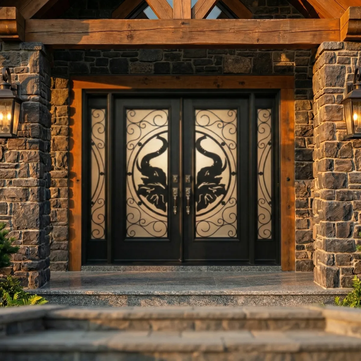 Bring a sense of wisdom and majestic strength to your home with the W17 Elephant wrought iron door. Featuring a unique symmetrical elephant motif and a perfect privacy rating of 10, this handcrafted collection provides ultimate security and total visual seclusion for elite GTA residences.